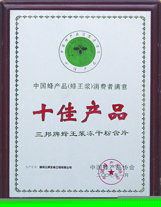 中國蜂產(chǎn)品消費者滿意十佳產(chǎn)品